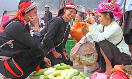 ![]() Se venden muchos tipos de mercancías en el mercado de Meo Vac, principalmente productos agrícolas y artesanales y herramientas hechas a mano |
