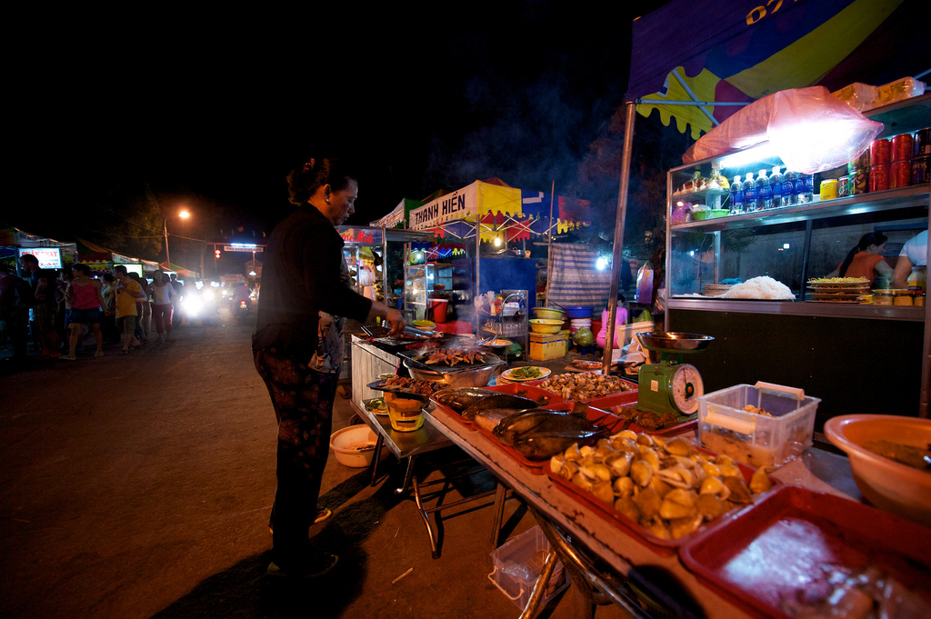 Por la noche, encontré un mercado nocturno, donde comí todos los platos de mariscos típicos de Con Dao, tales como caracolas a la plancha con tamarindos, chernas rojas y calamares asados, también langostas hervidas, etc. Muchos turistas extranjeros que provienen de distintos países del mundo estaban tomando relajadamente cafés calientes en restaurantes a lo largo de la costa. Torten Muenchberger me expresó: “Me encanta el café tradicional vietnamita. Aquí encontré una cafetería con el café riquísimo. Por eso de vez en cuando acudo allí para tomar una taza. Es interesante contemplar el mar disfrutando un buen café.”