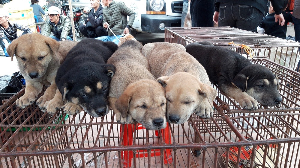 Cachorros a la venta en el mercado. (Foto: laodong.vn)