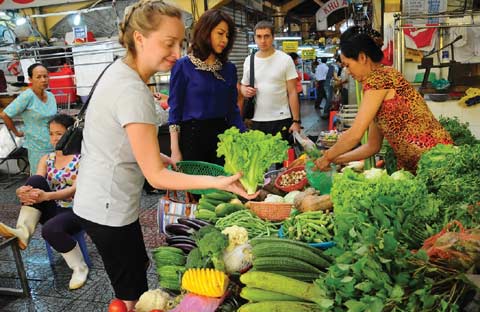 Animado de día y noche, el Mercado Ben Thanh cuenta con unas mil 500 tiendas donde 6 mil comerciantes realizan sus negocios, atrayendo de 8 a l0 mil compradores y visitantes al día. Aquí los turistas pueden comprar casi todos los productos desde utensilios domésticos y víveres frescos hasta artículos electrónicos de alta calidad. Especialmente desde hace tiempo, Ben Thanh se hace famoso con las frutas sabrosas de todas las regiones del país, en comparación con las demás ferias de la urbe. Por lo tanto, el paseo, compra y descubrimiento de este mercado forma parte indispensable de numerosos viajes turísticos por Saigón, Ciudad Ho Chi Minh.