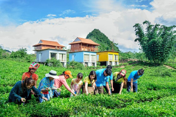 En la mañana, Moc Chau es tranquila. La frescura del clima aquí deleita a la gente. Los turistas se levantan en una habitación Bungalow Container del balneario Moc Chau Arena Village, contemplando el verdor de los campos de té en la loma, cultivados en filas llamativas. Al dar una mirada al lado opuesto a lo lejos se ven las moradas pequeñas Bungalow Container ubicadas en lo inmenso de la naturaleza donde resaltan el cielo azul y el verdor de las hojas de té. En un espacio vasto, los excursionistas se olvidarán del cansancio de la vida cotidiana. Pham Thanh Tam, turista que pasa sus vacaciones en Moc Chau Arena Village compartió: “Me gusta más la mañana porque el clima está fresco. Pese al uso del aire acondicionado en la habitación, me siento diferente al ambiente urbano. Tuve un sueño profundo hasta la madrugada y cuando me levanté, no me sentí cansada y quería mezclarme con la naturaleza. Luego, recorrí la loma donde se cosecha el té y recogí las hojas para preparar una estupenda tasa de infusión”.