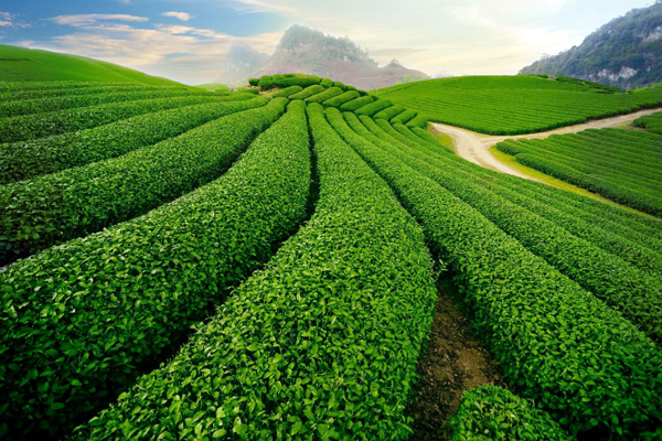 ![]() Los campos de té se organizan en filas llamativas