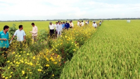 (VOVWORLD) - “Cultivar flores a lo largo de los bordes de los campos” es una iniciativa recién aplicada en la cooperativa An Nhut en el distrito de Long Dien, provincia sureña de Ba Ria-Vung Tau. Con 10 hectáreas en un plan piloto, los agricultores plantaron varias variedades florales para seducir a los insectos, que se alimentarán de los néctares y reproducirán, contribuyendo a proteger el arroz de las plagas y el medio ambiente, así como a elevar los ingresos de los agricultores.