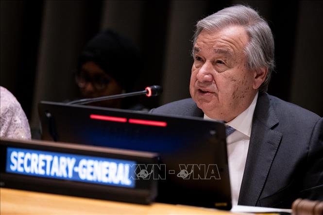 El secretario general de las Naciones Unidas, António Guterres, en la conferencia de prensa sobre nuevas políticas de la ONU en Nueva York, el 20 de julio de 2023. (Foto: Xinhua/VNA) |