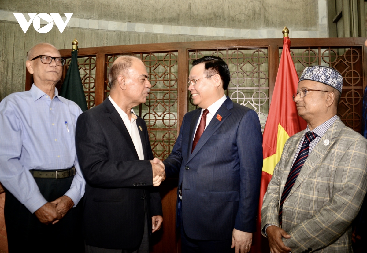 El líder parlamentario Vuong Dinh Hue recibe al presidente del Comité de Asuntos Exteriores de la Asamblea Nacional de Bangladesh. |