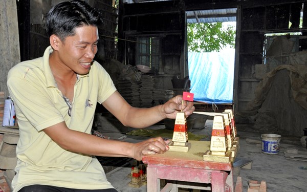 Los hitos de soberanía de arcilla hechos por Nguyen Van Sinh no solo ayudan a su familia a aumentar ingresos, sino que plasman sentimientos de los artesanos para con la sagrada soberanía de la Patria. Al ver a su padre elaborando este significativo objeto, su pequeño hijo en edad escolar también dedica tiempo a ayudarle, porque desde hace tiempo la imagen de la señalización de soberanía de Truong Sa está impresa en su mente.