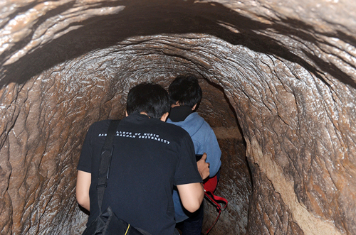 Turistas en los túneles de Vinh Moc