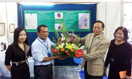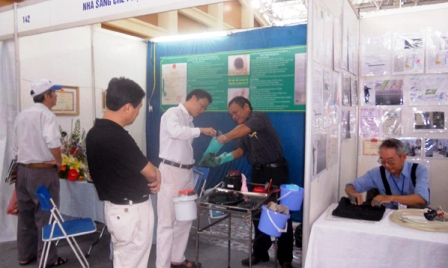 ![]() El inventor Pham Phuc Thao presenta el procedimiento operacional de su producto a los visitantes en una exposición de la creatividad técnica