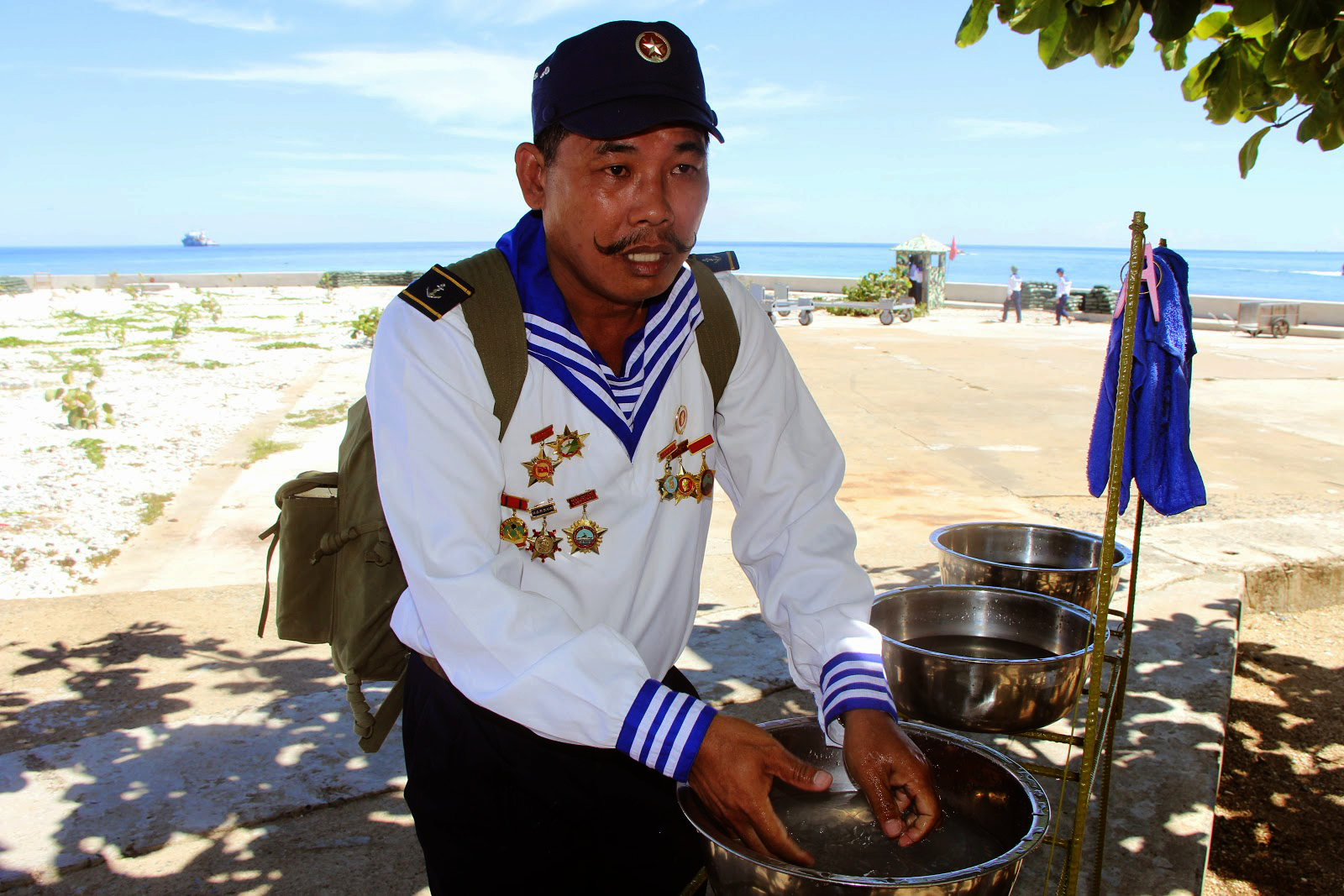 El barco HQ 57l surca las olas, llevando al equipo de trabajo a visitar las islas sumergidas y emergentes del archipiélago de Truong Sa (Spratly). Entre los pasajeros, el veterano Tran Van Xuat tiene impresiones especiales sobre esta tierra. Hasta la fecha, todavía recuerda el l0 de mayo de l984 cuando pisó por primera vez Truong Sa Dong, uno de esos islotes para cumplir su tarea. Xuat compartió: “La orden de ir a Truong Sa Dong para cumplir la tarea no fue una sorpresa para mí. El viaje duró 2 días y noches para llegar a dicho conjunto de islas y a la una de la tarde del l0 de mayo de l984 desembarcamos a Truong Sa Dong. En ese tiempo la vida material de los soldados fue muy difícil, pero nos beneficiamos del compañerismo. Fuimos 3l personas en total y nos llevamos como hermanos sanguíneos”.