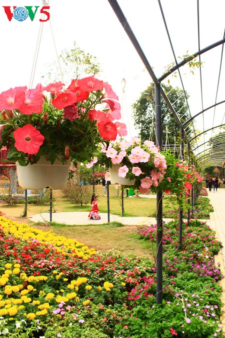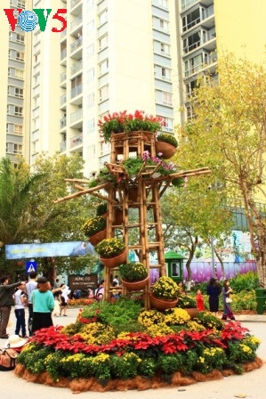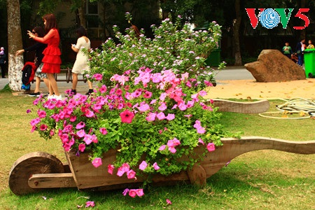 La decoración es muy minuciosa. Los artesanos escogieron con mucho cuidado los tipos de flores a presentar y cómo hacerlo, colocándolas enmacetas y colgándolas o ubicándolas en carritos. Gracias a este esfuerzo, reflejan el ambiente típico del Tet en Vietnam y generan una muy alegre fiesta de flores