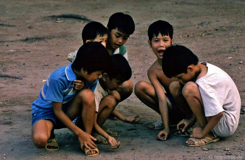 Niños juegan canicas, entre las distracciones más populares en Vietnam