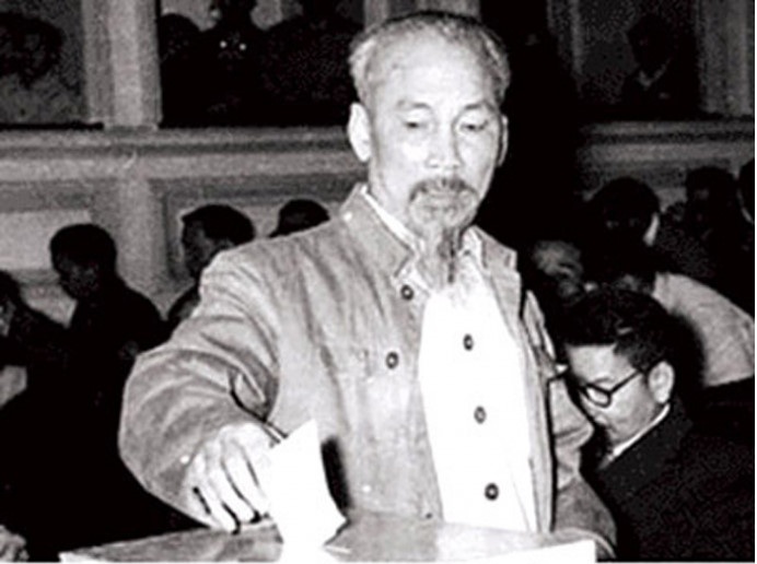 ![]() El líder revolucionario Ho Chi Minh ejerció su derecho al voto