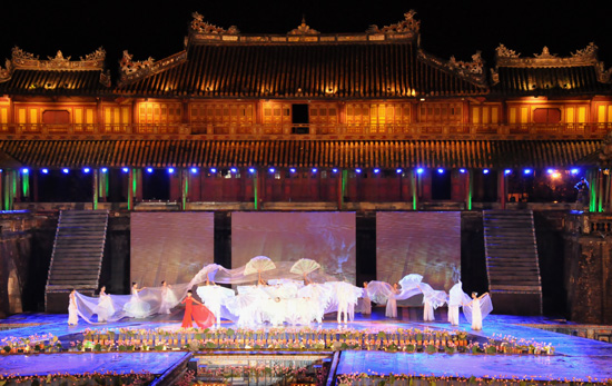 El Festival de Hue 2012 se inauguró oficialmente el 7 de abril, en Ngo Mon- puerta principal al sur de la imperial ciudadela de Hue, con un excelente programa integrado por artistas nacionales y extranjeros. El Festival de Hue 2012 y la inauguración del Año nacional de Turismo se llevaron a cabo en el espacio multicolor, para honrar a los valores tradicionales vietnamitas y fomentar el intercambio de diferentes culturas de los 5 continentes.