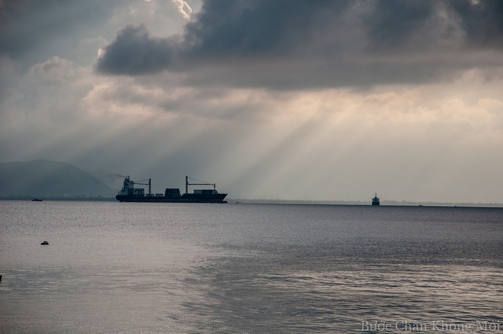 ![]() Buques de carga salen del puerto de Tiên Sa al atardecer