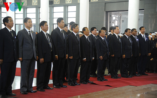 ![]() La delegacion de alto nivel de Laos, con el presidente Choummaly Sayasone al frente en la ceremonia funeraria |
