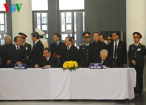![]() El líder partidista y el miembro del Comité central del PCV, Le Hong Anh expresan sus emociones en el Libro de condolencias |