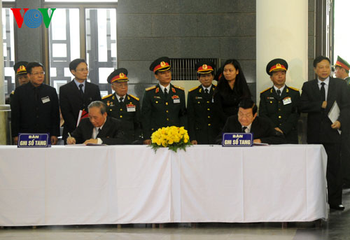 ![]() El presidente Truong Tan Sang y la delegacion del Estado rinden homenaje al general Vo Nguyen Giap |