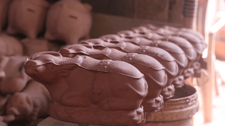 | Uno de los productos tradicionales de la alfarería de Lai Thieu es la hucha en forma de cerdo. En los últimos años, para satisfacer los gustos de los consumidores, los pobladores han “renovado” la forma de ese artículo con la imagen de los 12 animales del horoscopo chino. Debido al proceso de urbanización, los hornos en Lai Thieu fueron trasladados a la ciudad de Tan Uyen (Binh Duong). Este año, el área de cerámica de Tan Uyen comenzó a producir búfalos de barro. |