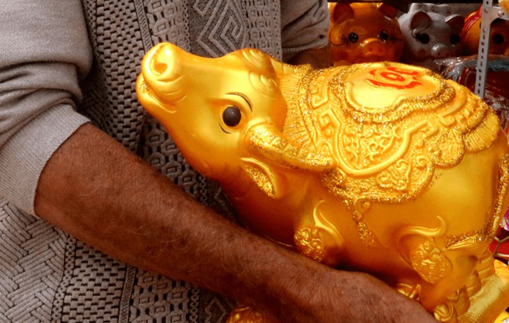 | El precio de un búfalo dorado oscila entre 10 mil y 80 mil dongs (dependiendo de su tamaño). |