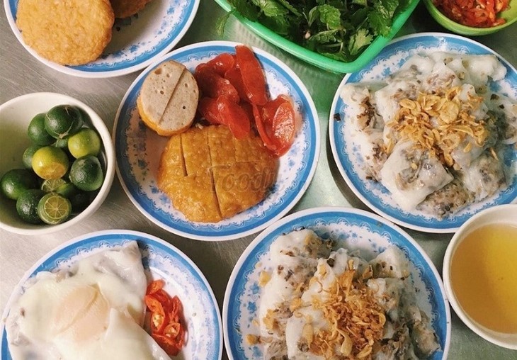 4. Bánh cuốn nóng Hồ Tây- Panqueque de arroz enrollado al vapor (calle Yen Phu, 34, distrito de Tây Hồ)
