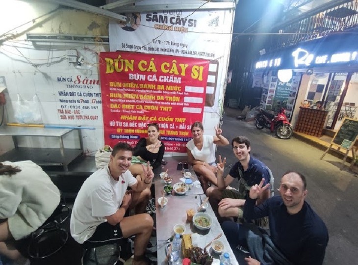 Este restaurante ofrece fideos en caldo de pescado, para comer con pescado asado, eneldo, cebollino y otras verduras. (Foto: HanoiToplist) |