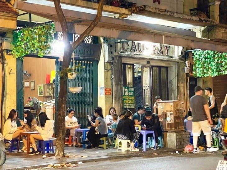 Joshua Zukas ofrece a sus lectores este restaurante donde podrán disfrutar de la comida callejera de Hanói y contemplar el paso de los trenes. Foto: Dac Huy/VTCNews |