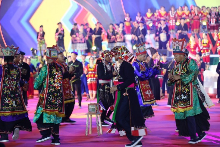 La ceremonia inaugural reúne a más de mil artistas y deportistas de 14 provincias del norte en que se establecen los Dao. Foto: Quang Vinh/sggp.org.vn |