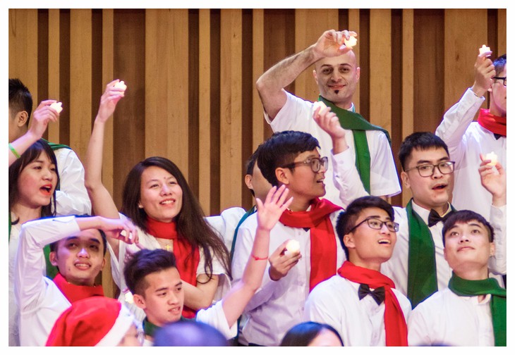 La canción “Silent Night” fue interpretada por la soprano Trang Bui, una de las mejores cantantes de ópera de Vietnam, en un escenario iluminado por cien velas. |