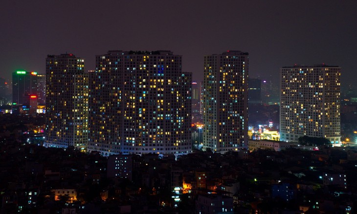 Junto a los edificios antiguos, cada día surgen nuevas construcciones en Hanói. En la foto, edificios modernos en la calle Trang Tien y la plaza de la Revolución de Agosto. |