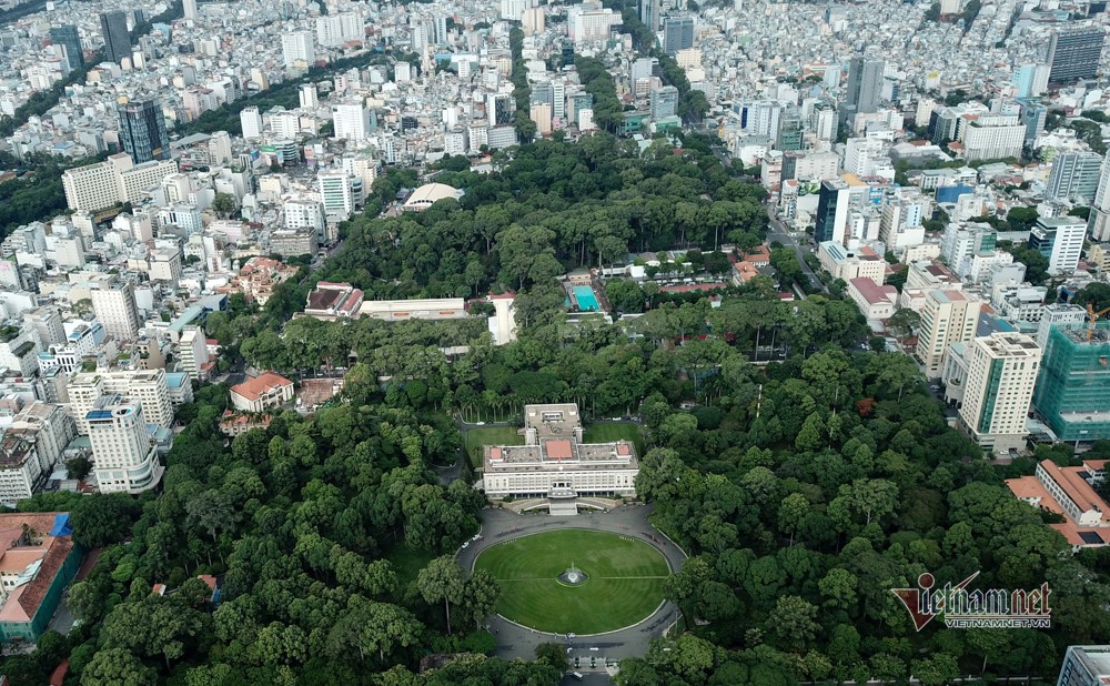 El Palacio de la Independencia está ubicado en una zona arbolada y rodeada de altos edificios. (Foto: Vietnamnet.vn) |