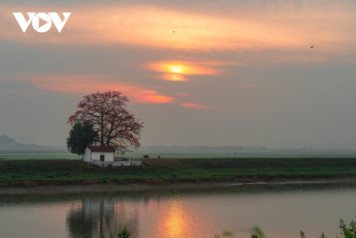 | Junto con las imágenes familiares de las aldeas vietnamitas como el baniano y la casa comunal, el árbol de algodón de seda roja también trae recuerdos de la infancia. |