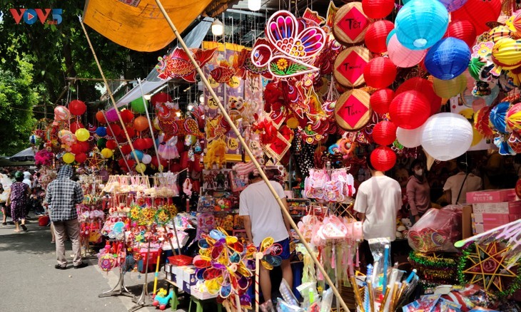 Desde el comienzo del octavo mes del calendario lunar, el área alrededor de las calles Hang Luoc, Phung Hung, Dong Xuan y especialmente Hang Ma se anima para dar la bienvenida al Festival del Medio Otoño. |