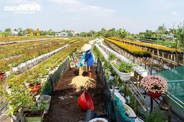 El inicio de la temporada de flores del Tet marca también el comienzo del periodo de mayor actividad para los cultivadores de esta zona florícola tradicional. Las labores cotidianas de fertilización, riego y control de plagas se intensifican en los jardines, con el fin de asegurar que las flores florezcan en el momento oportuno. |