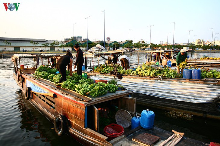 Estos barcos provienen principalmente de provincias del sudoeste como Long An, Tien Giang, Ben Tre y Vinh Long con frutas, flores y productos agrícolas a bordo. |