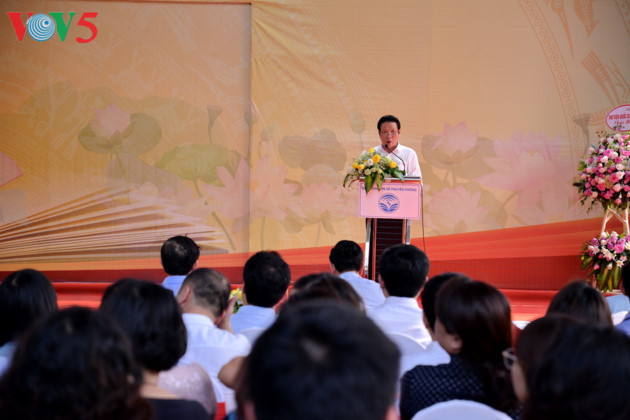 El jefe del Departamento de Propaganda y Educación del Comité Central del Partido Comunista de Vietnam, Vo Van Thuong, y el viceprimer ministro de Vietnam, Vu Duc Dam, cortaron la cinta de inauguración. |