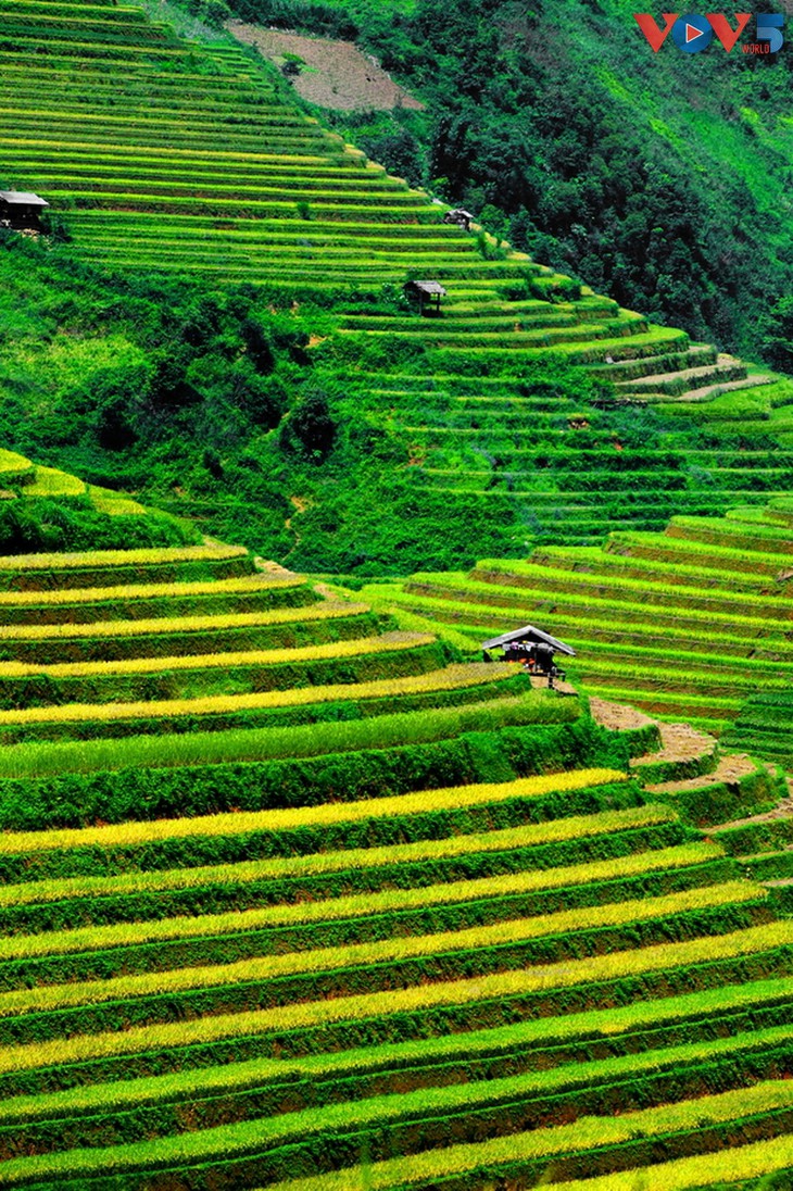 | Toda la escena natural crea imágenes brillantes, atrayendo a turistas nacionales y extranjeros a viajar y tomar hermosas fotos del país y de la gente de Vietnam. |