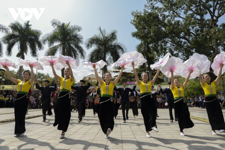 ![]() En 2016, el Ministerio de Cultura, Deporte y Turismo solicitó a las autoridades de las provincias de Yen Bai, Son La, Lai Chau y Dien Bien que presentaran la candidatura de la danza Xoe como patrimonio cultural de la UNESCO.