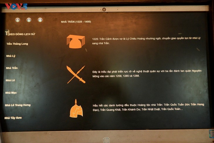 Los visitantes tienen acceso a miles de datos en texto e imágenes, como en esta foto, datos históricos sobre la dinastía Tran (1225-1400). |
