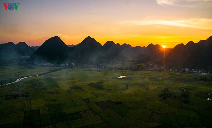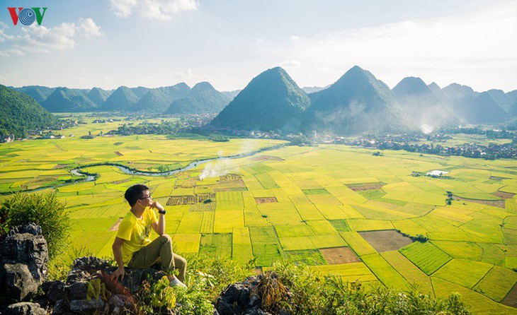 Una vista del pintoresco paisaje del valle de Bac Son durante la temporada de maduración del arroz. |
