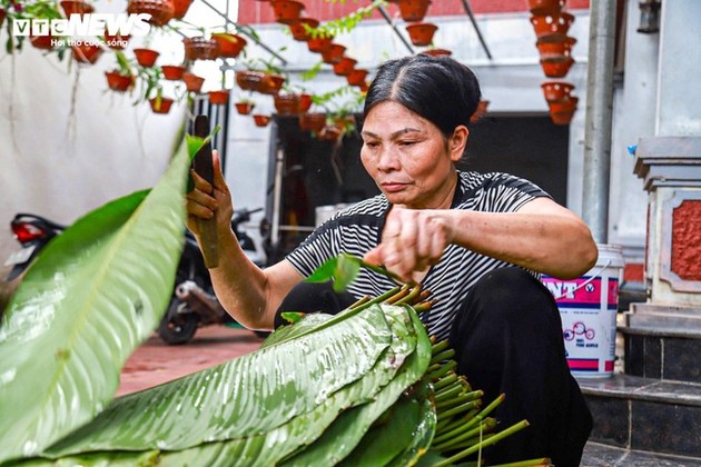 Nguyen Thi Dap, de 63 años, es propietaria de una instalación productora de Banh Chung. Si bien en días normales fabrica entre 300 y 500 pasteles diarios, a medida que se acerca el Tet, esta cifra aumenta hasta 1000 o 3000 cada día. |