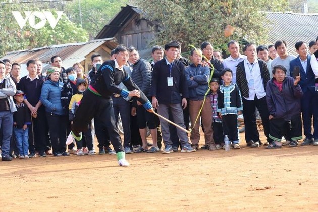 Durante el festival, la gente local participa en varios juegos folclóricos. El juego más popular es Tu Lu, una versión tradicional de los trompos, en el que participan 16 equipos de las provincias de Son La y Yen Bai. |
