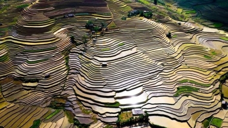 (VOVWORLD) - Los campos en terrazas en la región montañosa del norte de Vietnam se vuelven hermosos en mayo y junio, cuando los agricultores van a los campos de arroz para plantar una nueva cosecha.