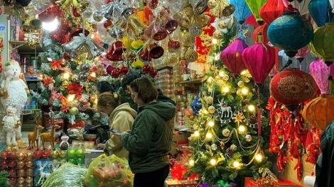 (VOVWORLD) - Las luces navideñas brillan intensamente en Hanói.