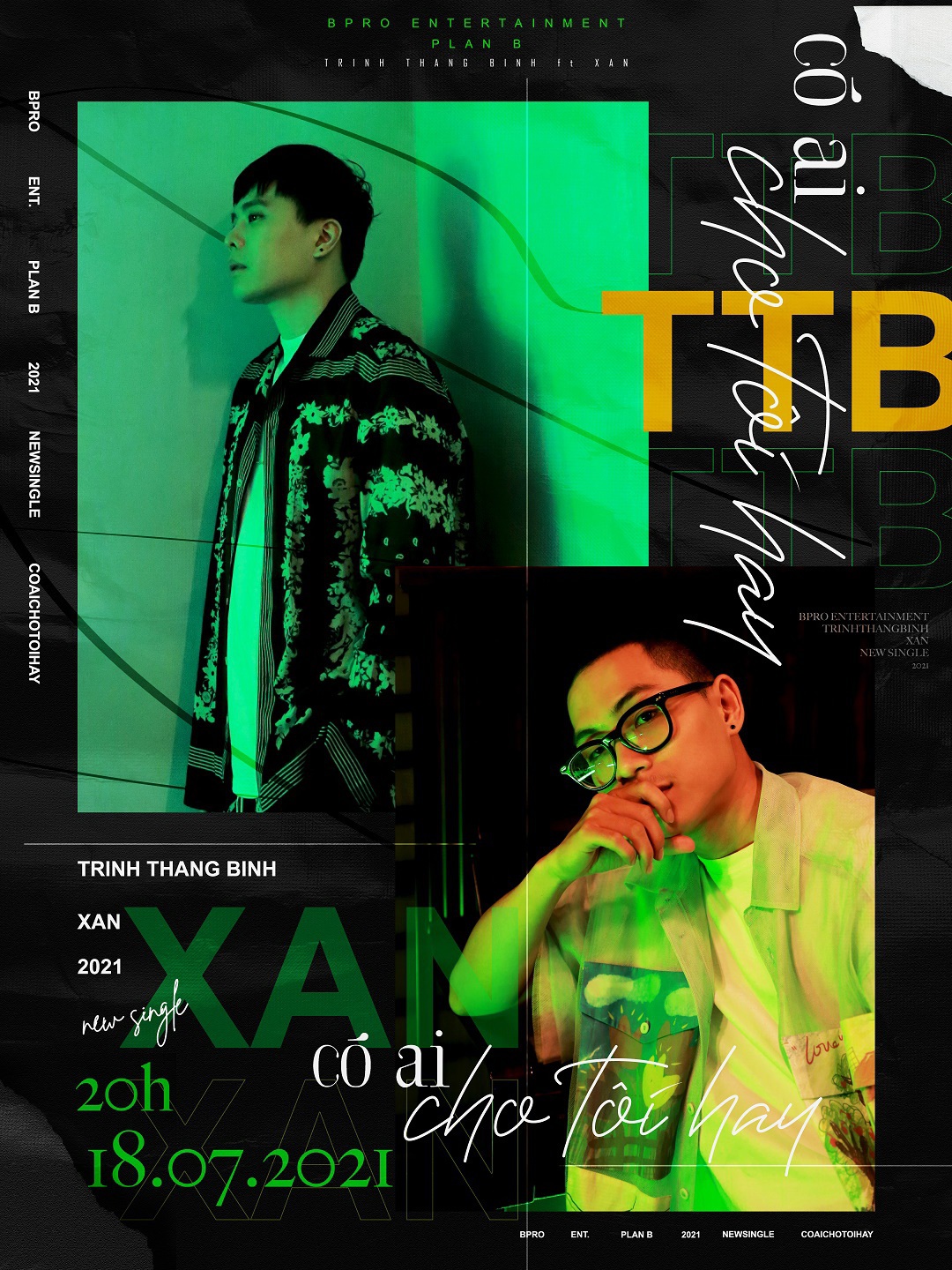 Recientemente, Trinh Thang Binh lanzó un proyecto denominado PLAN B para los jóvenes productores de música. Según contó, el programa tiene como objetivo conectar a los productores y cantantes. Para dar inicio al proyecto, Trinh Thang Binh presentó el 18 de julio el video musical titulado “Alguien me ayuda a hablarte sobre mi amor” en el que cantó a dúo con el joven productor XAN. Esta obra fue compuesta por XAN, quien invitó a Thang Binh a participar. Thang Binh dijo que después de esta composición, cada 2 semanas, PLAN B presentará un nuevo productor, con diferentes estilos musicales. Él invirtió en construir tres estudios privados con un presupuesto de alrededor de 2 mil millones de dong (más de 87 mil dólares) para ofrecer así las mejores condiciones de producción a los jóvenes talentos.