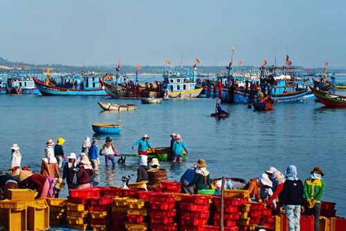 ![]() "Mercado de pescados de Binh Chau", una de las obras presentadas en la exposición