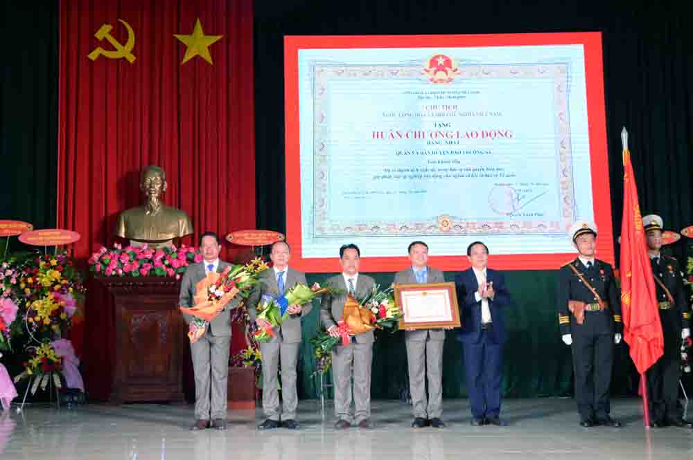 Ha Quoc Tri, autorizado por el presidente de Vietnam, otorga la Orden de Trabajo de Primera Clase a los soldados y al pueblo del distrito de Truong Sa. (Foto: baokhanhhoa.vn)
