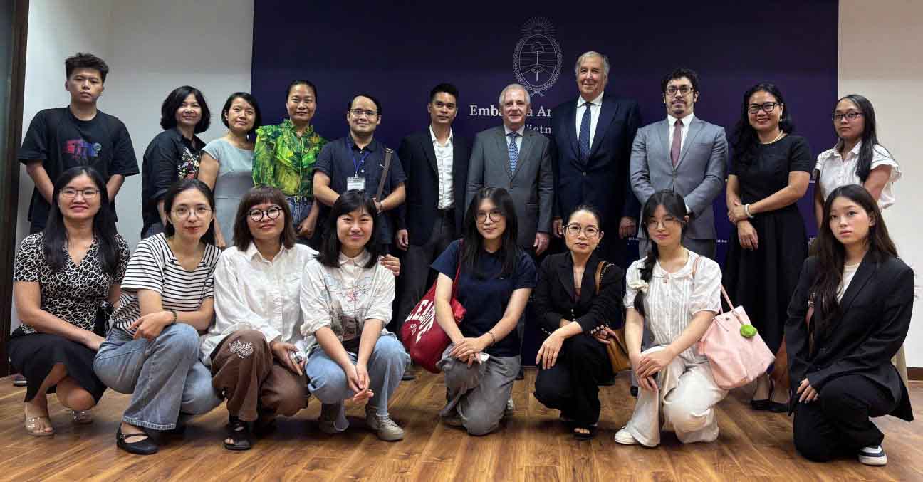 Delegados posan para una foto en el encuentro con la prensa en la Embajada de la República Argentina en Vietnam. (Foto: Embajada de la República Argentina en Vietnam) |