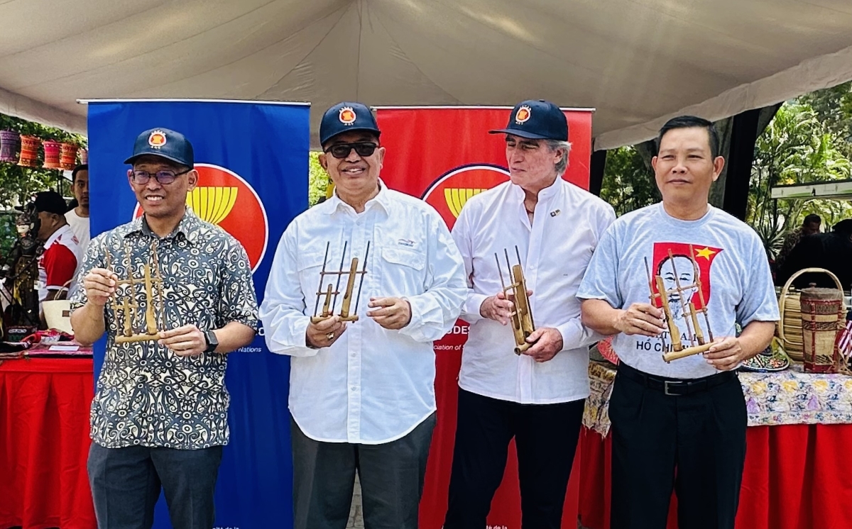 En la feria, la Embajada de Vietnam presentó productos artesanales y trajes tradicionales, como túnicas Ao dai, sombreros cónicos y platos típicos como la sopa de fideos con pollo o carne de ternera (pho) y los rollitos de primavera (nem), que dejaron buenas impresiones en los participantes, tanto locales como internacionales.