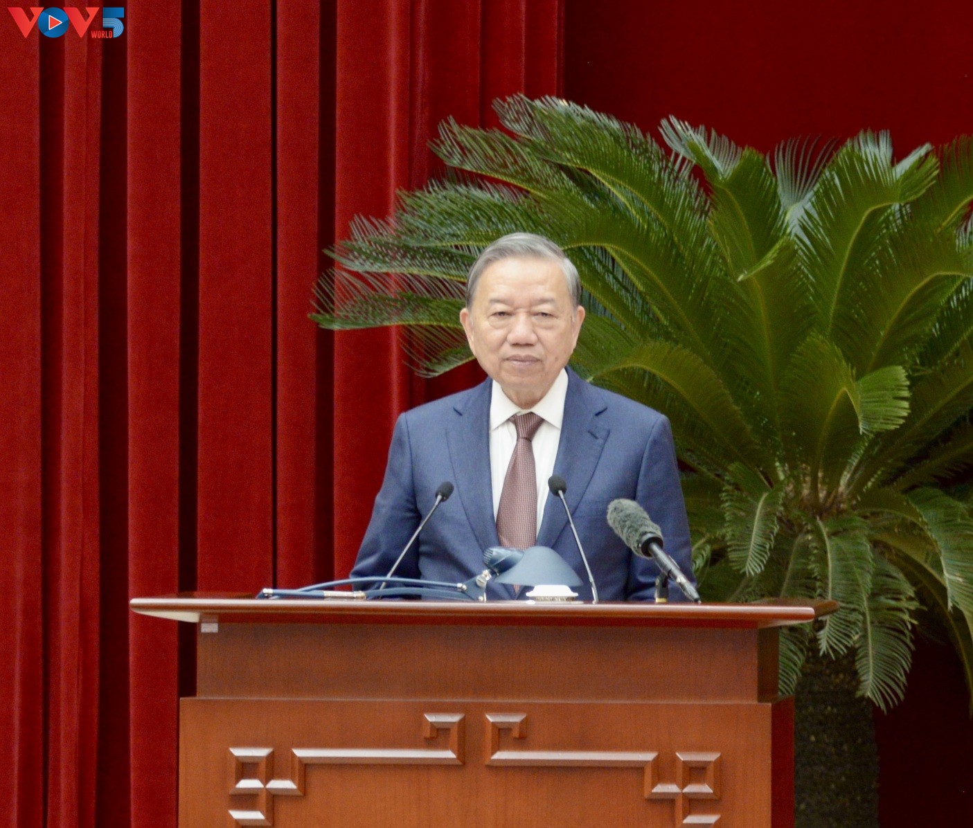 El secretario general del Partido Comunista, To Lam, durante su intervención en el encuentro. (Foto: VOV) |