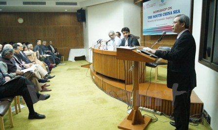 Igualmente, Ton Sinh Thanh expresó preocupación ante los recientes actos de militarización por parte de China en el área, que no sólo violan gravemente la soberanía de Vietnam, sino que también amenazan la seguridad, estabilidad y libertad de tránsito aéreo y marítimo en el Mar Oriental y erosionan la confianza estratégica en la región India-Asia-Pacífico. Esta opinión recibió el apoyo de los expertos indios participantes en el simposio, quienes abogaron por las vías pacíficas para resolver las tensiones en pro de la paz, prosperidad y desarrollo de la región.